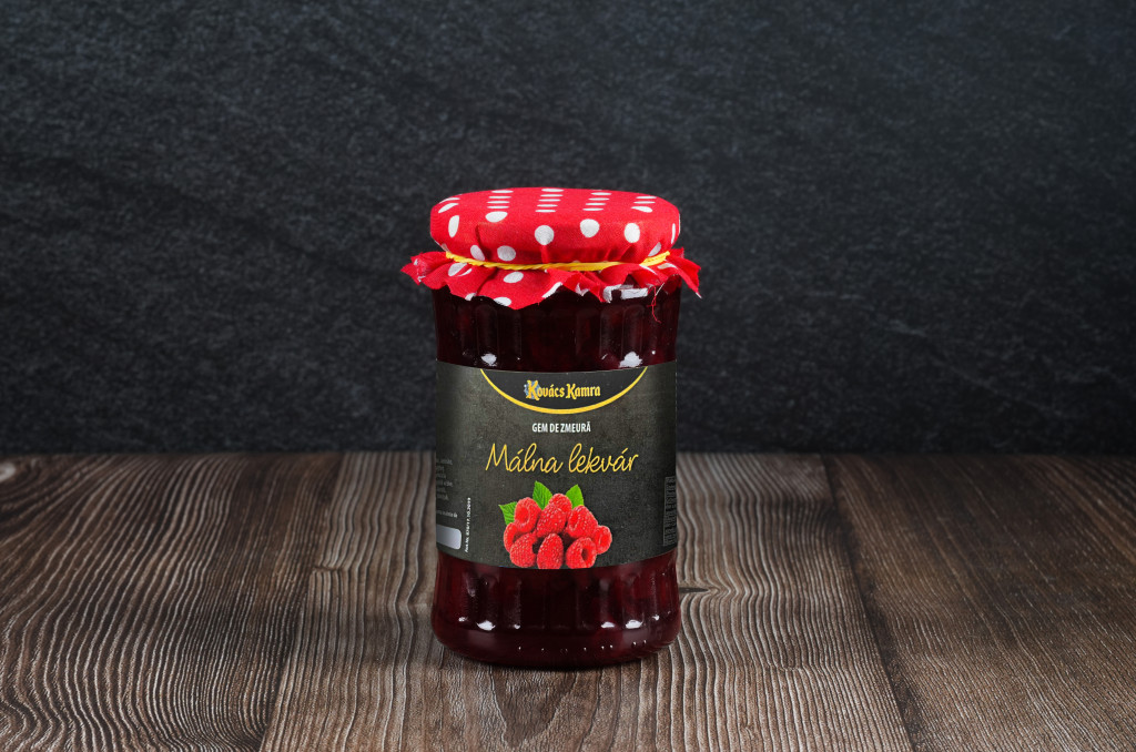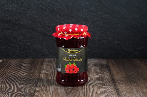 Magas gyümölcstartalmú málna lekvár zamatos bogyós ízzel. Kenyérre, joghurtba vagy sütéshez ideális. Házias textúra, természetes összetevőkkel.